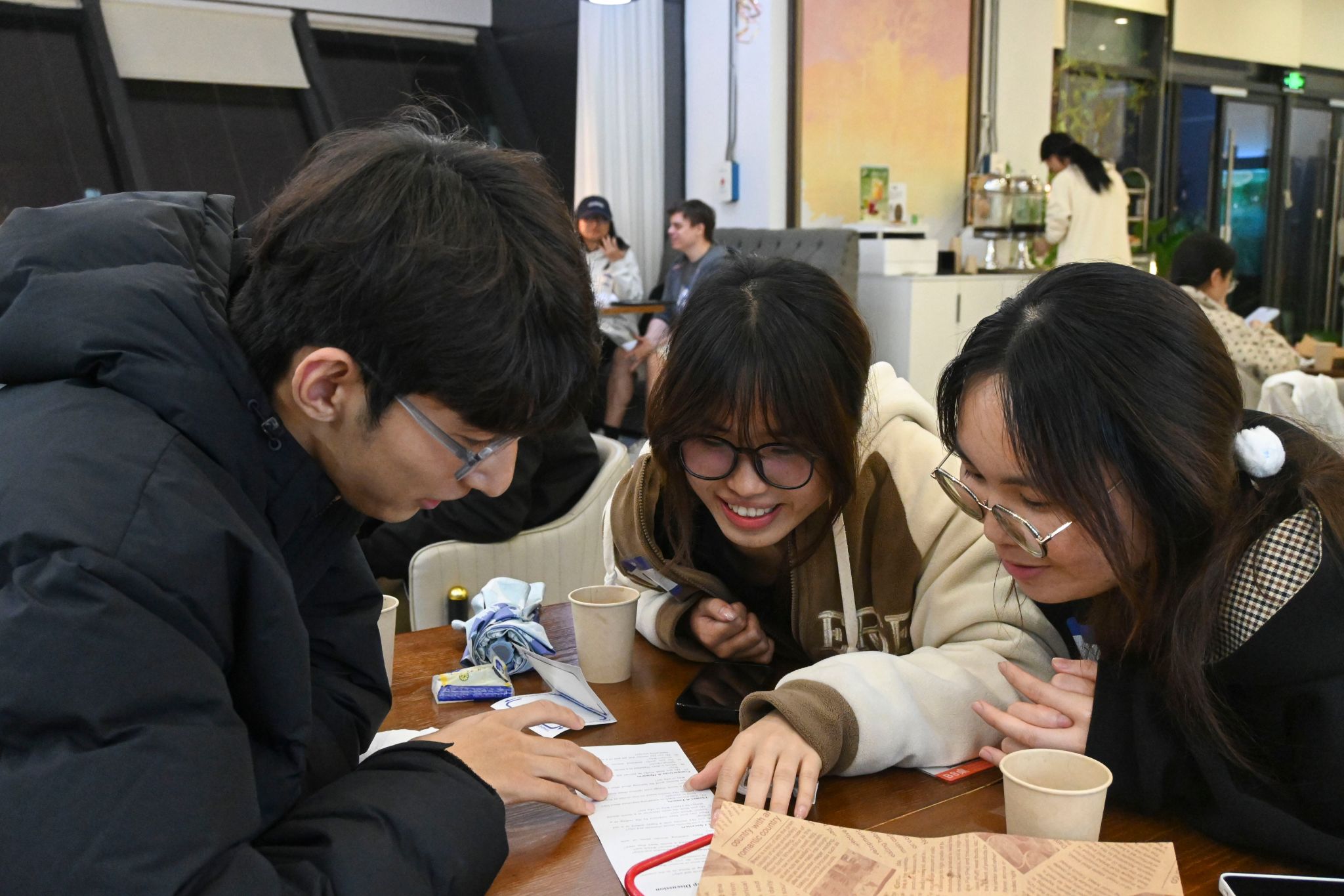 在交流环节,Nathan为各组发放专属讨论表,引导大家围绕经典影片、心动角色、观影感悟展开深度对话。同学们踊跃分享心头好电影与难忘银幕瞬间,用流利英语诉说故事带来的感动与思考,现场氛围温暖真挚,交流热烈。