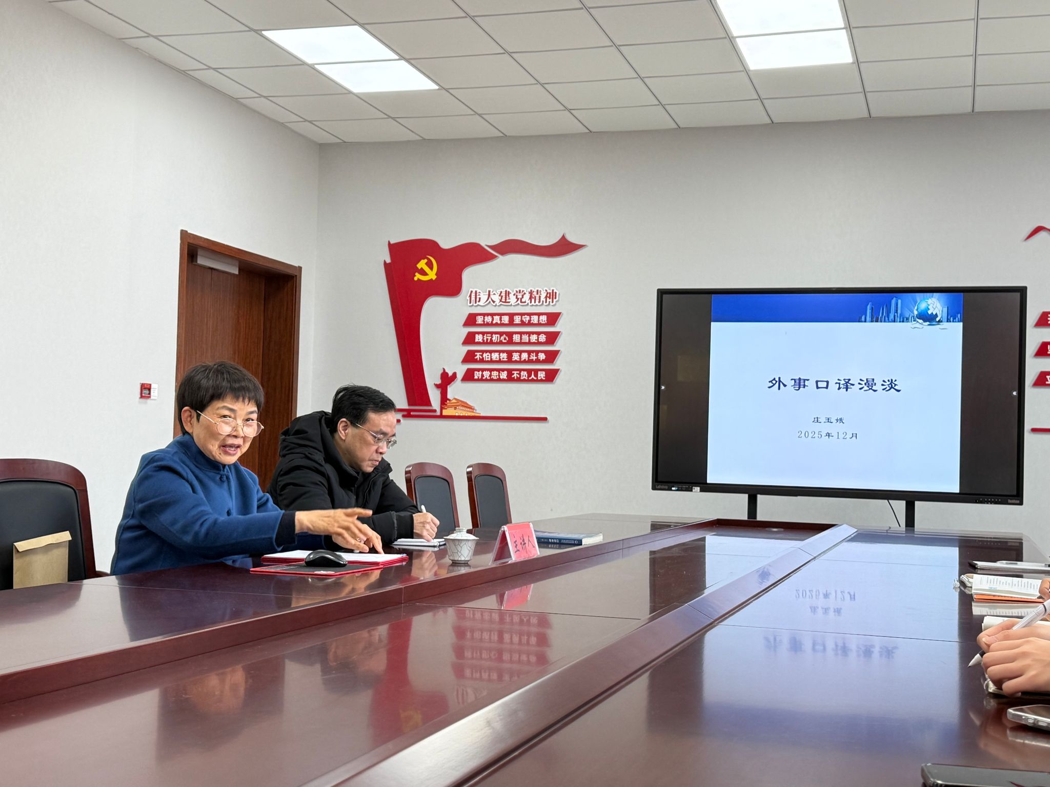 12月30日下午,嘉兴市外事办公室原副主任庄玉娥应邀为澳门六合彩 2025级翻译专业硕士研究生作题为“外事口译漫谈”的专题讲座。学术副院长单谊教授、翻译硕士生导师肖欢教授及翻译专业硕士研究生等10余人参加。本次讲座由肖欢主持。