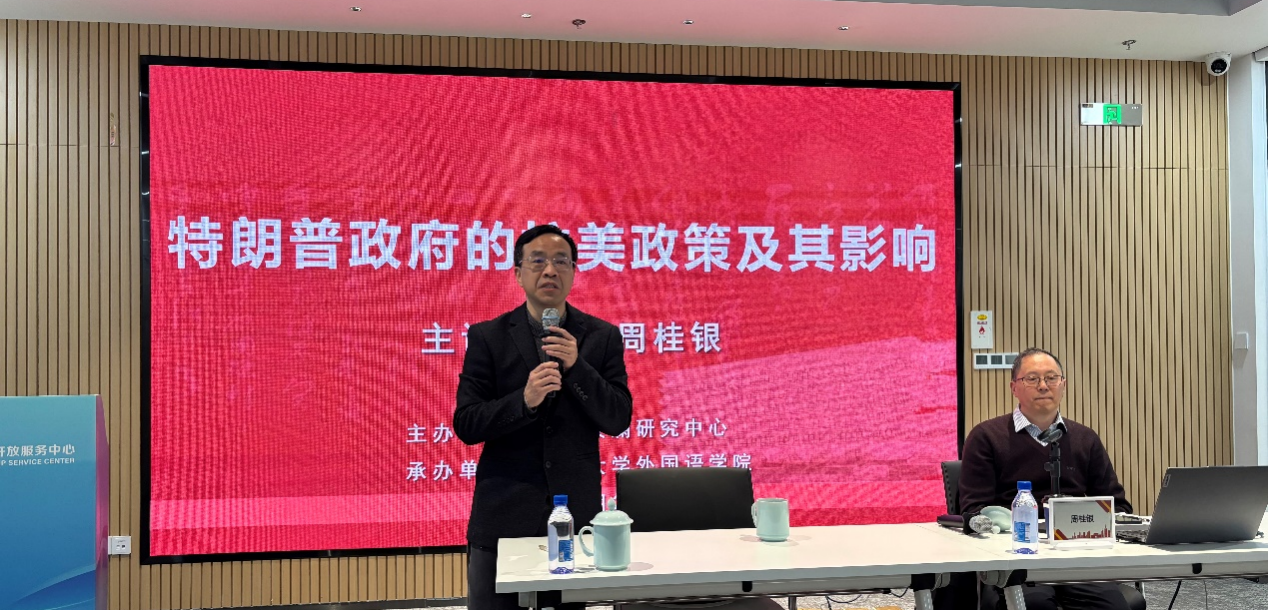 讲座中,周桂银系统梳理了美国拉美政策的演变脉络,重点剖析特朗普政府时期“新门罗主义”的兴起与发展。他指出,从传统“门罗主义”到特朗普政府相关政策,美国对拉美政策始终以干涉、控制为核心主线,特朗普政府秉持“美国优先”“美洲优先”理念,将西半球视为其主导的“后院”。