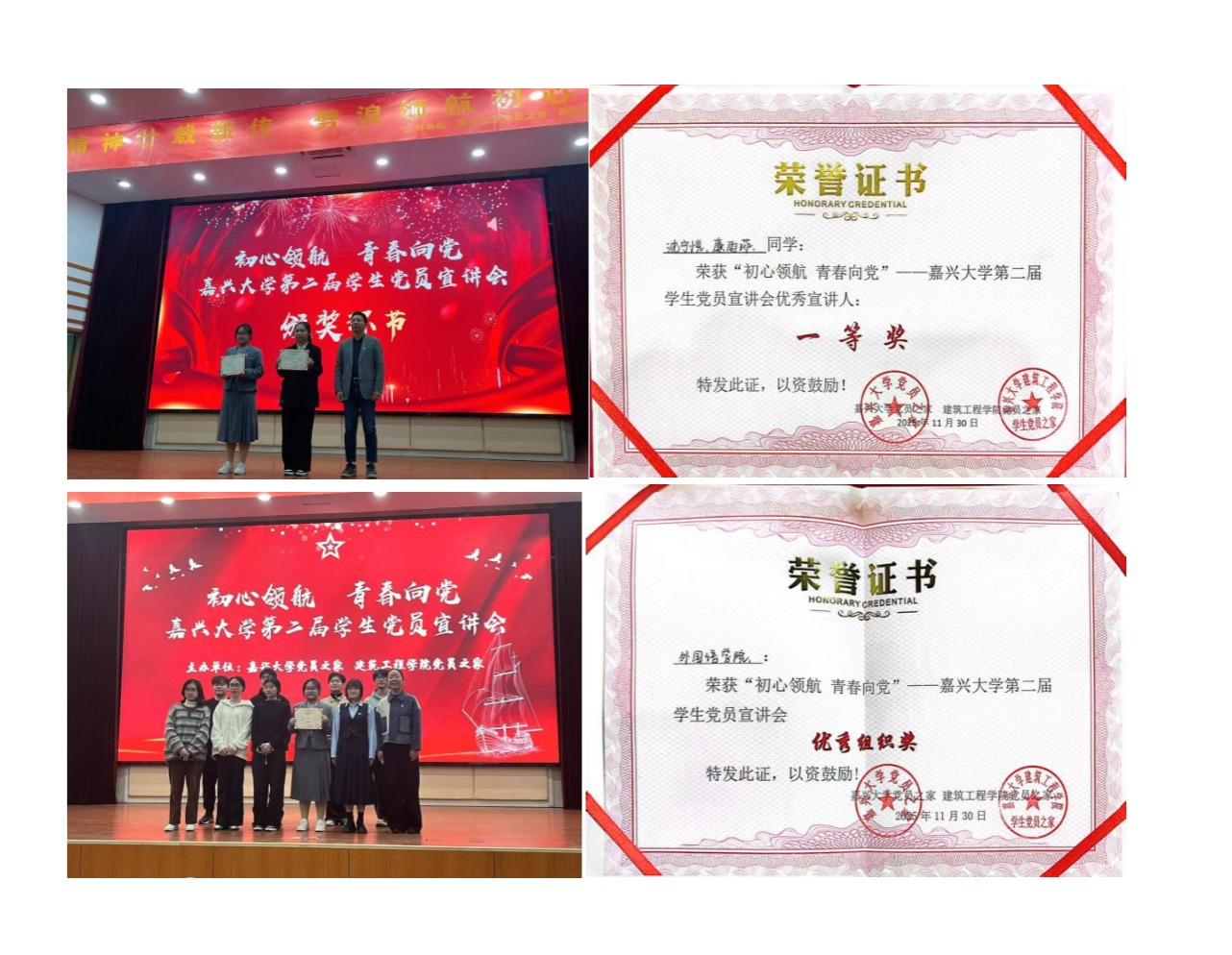 11月30日,嘉兴大学第二届“初心领航 青春向党”学生党员宣讲会在TCL报告厅举行。澳门六合彩 凭借出色表现,以全场最高分荣获“优秀宣讲人一等奖”与“优秀组织奖”。