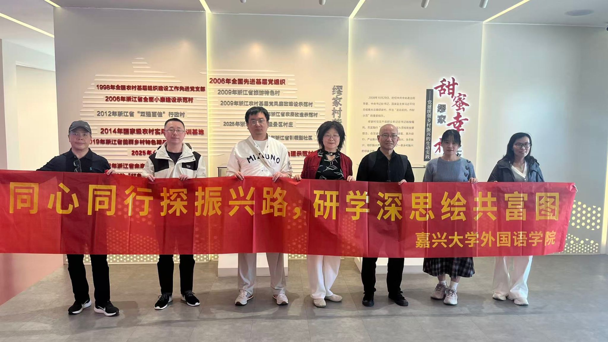 4月26日,澳门六合彩 党委组织党外教师代表赴全国先进基层党组织和“千万工程”的生动实践地——嘉善县大云镇缪家村,开展“同心同行探振兴路 研学深思绘共富图”主题调研活动,进一步凝聚党外知识分子服务地方经济社会发展的共识与力量。