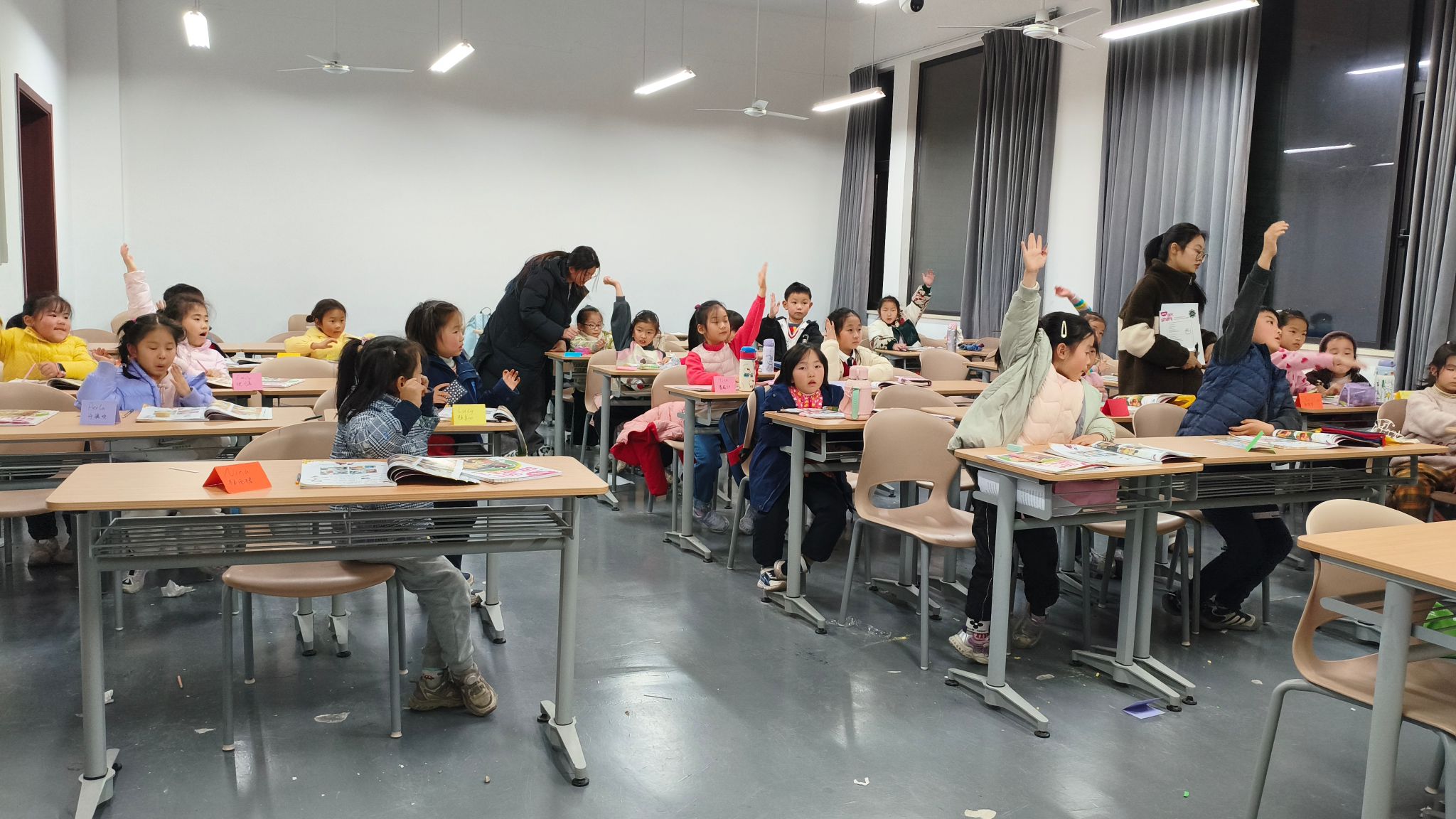 本次公益课充分发挥澳门六合彩 的专业教学优势,根据孩子的年龄与英语基础,分别开设启蒙班与基础阅读班。青年教师与大学生志愿者以绘本故事为载体,结合英文歌曲、情景表演、互动游戏等多种形式,打造沉浸式、互动式的语言学习环境。孩子们从起初的羞涩模仿,到后来踊跃参与角色扮演、主动用英语表达,不仅提升了语言能力,也在集体学习中培养了分享与合作的意识。