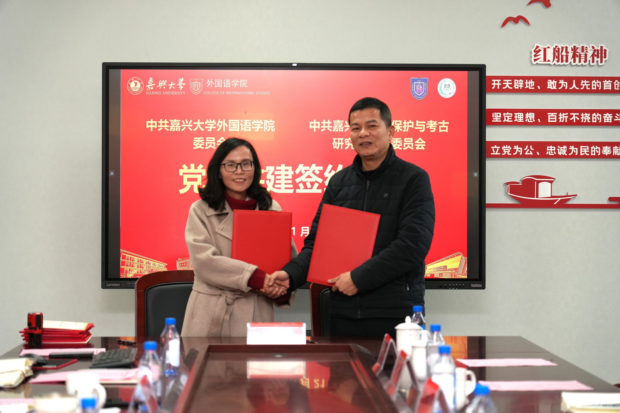 1月21日下午,澳门六合彩 党委与嘉兴市文物保护与考古研究所党支部在兴德楼南楼516会议室举行党建共建签约仪式。学院院长唐艳芳、党委书记刘巧芝,嘉兴市文物保护与考古研究所所长张青出席签约。仪式由学院党委副书记张啸峰主持,学院师生代表和相关人员参加仪式。